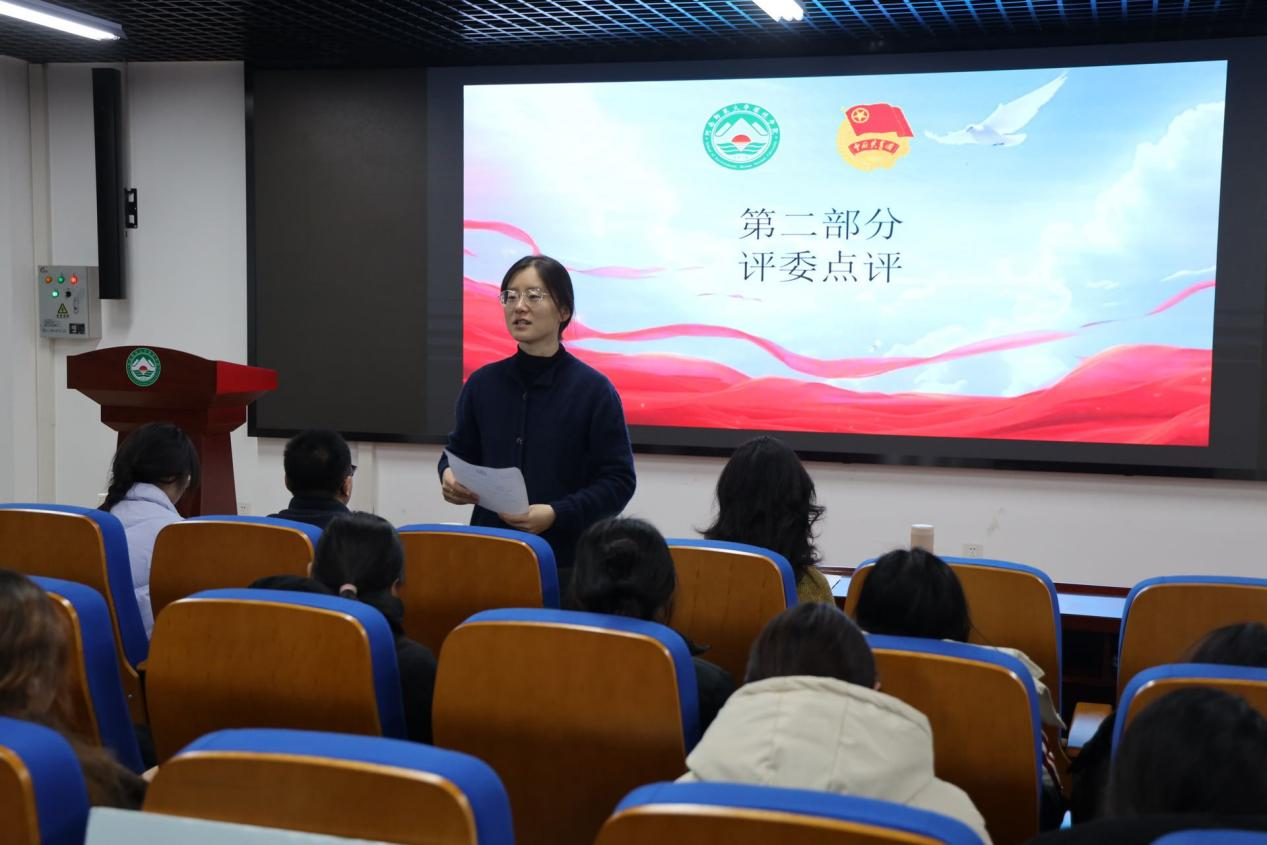比赛结束后,李雪高度肯定了同学们的精彩表现,同时围绕内容设计、肢体语言、情感运用等方面做了深入的指导。岳云鹏在总结发言中指出,“致敬时代楷模,传承榜样精神”,不仅仅是一句口号,更是一份责任与使命。通过今天的活动,我们看到了榜样精神的强大力量,希望同学们能够继续保持这份热情与执着,将所学、所感,转化为实际行动,不仅在个人成长上追求卓越,更要积极传播正能量,影响和带动周围的人,共同为构建更加和谐美好的社会贡献力量。