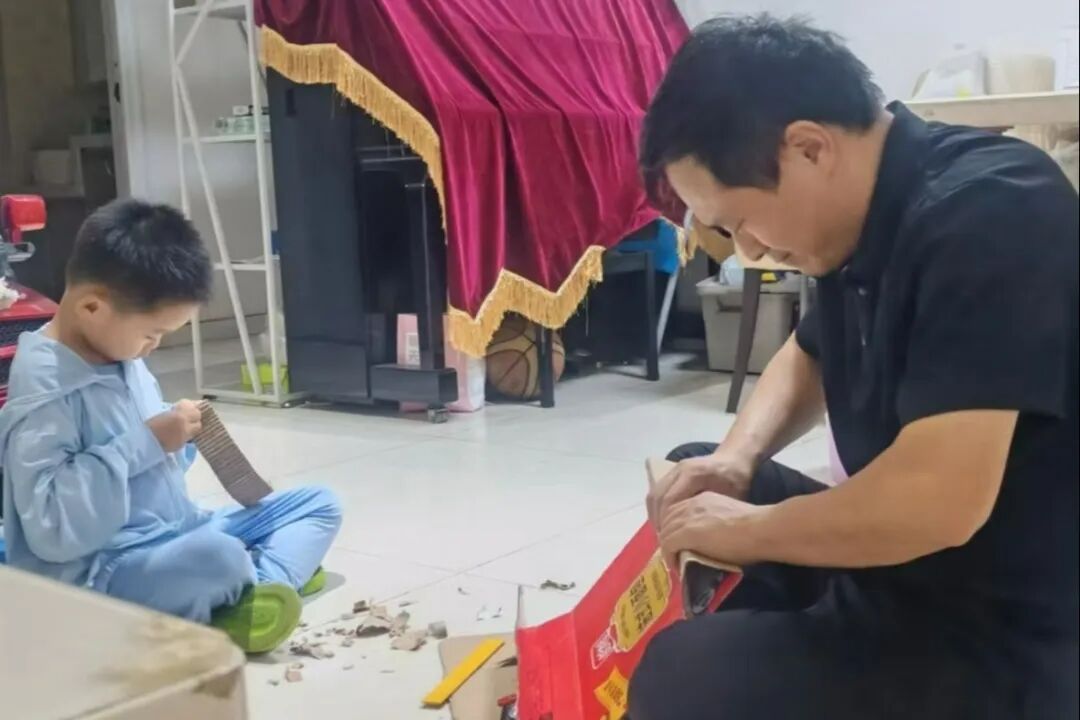 2025年9月29日,孩子和爸爸妈妈利用生活中废旧物品进行设计改造,共同制作具有科学性、创造性、美观性的亲子科技作品。