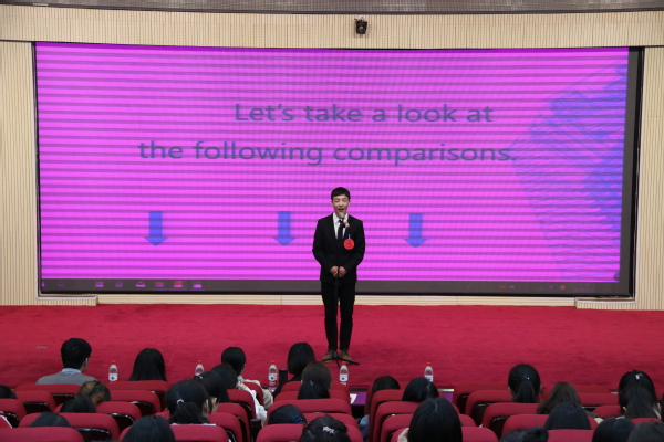 3月31日上午,由政治与公共管理学院团委学生会学习部举办的双语演讲比赛决赛于思政平台展开,学院2016级辅导员王卉,外国语学院部分优秀学生担任评委,学院学生近200人观看此次比赛。