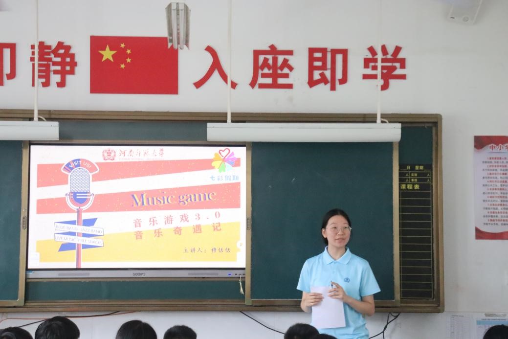 为提升被支教学生音乐素养和审美素养,7月9日下午,政治与公共管理学院“方田育青禾”爱心支教服务团于方城县第五高级中学附属学校开展“奇遇记”主题音乐课程。