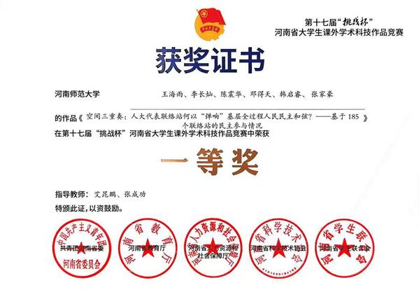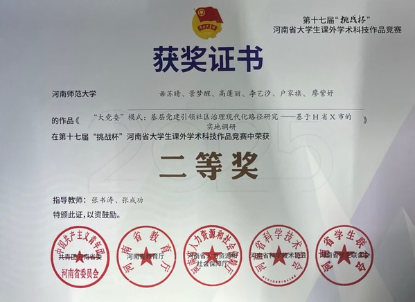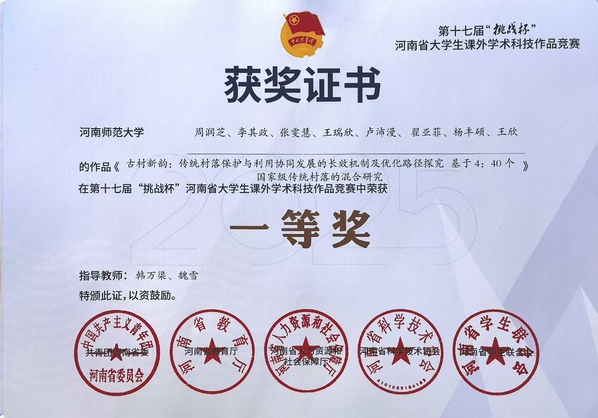本次竞赛中,多支参赛团队的研究成果因视角新颖、论证严谨受到评委高度认可。周润芝、李其政等同学的《古村新韵:传统村落保护与利用协同发展的长效机制及优化路径探究 基于4:40个国家级传统村落的混合研究》,以及王海雨、李长灿等同学的《空间三重奏:人大代表联络站何以“弹响”基层全过程人民民主和弦?——基于185个联络站的民主参与情况》,凭借深刻的问题洞察与创新的研究方法荣获省级一等奖;毋苏晴、景梦醒等同学的《“大党委”模式:基层党建引领社区治理现代化路径研究——基于H省X市的实地调研》获省级二等奖;李长灿、王海雨等同学的《使空间运转起来:乡村文化振兴何以实现资源盘活与互动创制?——基于豫北乡村的扎根考察》获省级三等奖。此外,韩万渠、张书涛、张立国、艾昆鹏、魏雪等教师全程提供专业指导,为作品的打磨完善提供了有力支撑。