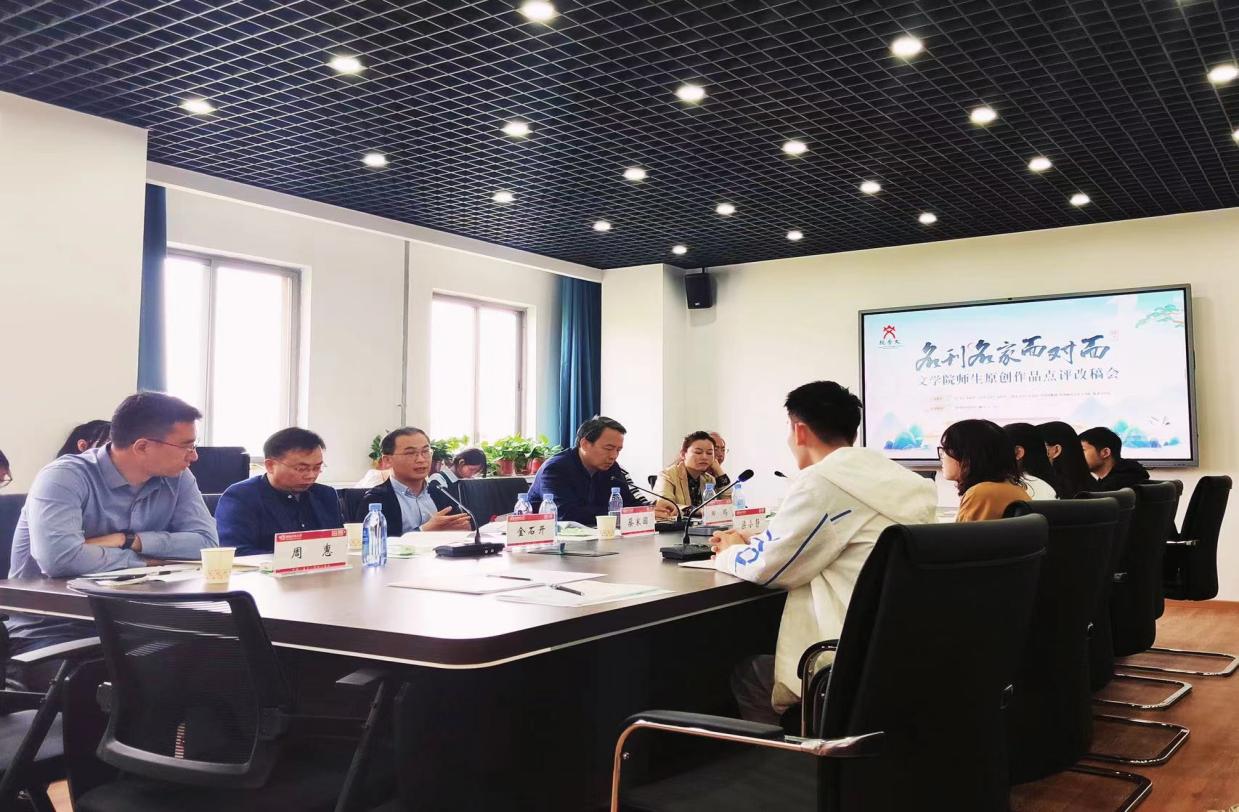 此次活动以改稿会的形式对文学院学生创作的原创作品进行点评。在点评环节前,《海豹之夜》作者2023级汉语言文学专业陈俣伸、《春天》作者2023级汉语国际教育专业郭洪宇、《橘猫》作者2021级汉语言文学专业苏志朋分别阐述了自己的创作动机与过程。专家们对师生们的创作质量和水平给予高度赞扬和充分肯定,同时也指出了当中的一些不足之处,季亚娅在了解《海豹之夜》的创作缘由和思路之后,指出在创作初期不要过早追求篇幅的长短,要注重落实创作中的核心想法。针对诗歌《春天》,金石开表示不同的情感、不同的场景的穿插正是一种构成诗意的重要设置,意境中有逻辑的情感转折是诗歌创作中需要的技巧。在对《橘猫》的点评中,师力斌建议诗歌的创作不必追求华丽的辞藻,要学会用平实的语言去表达丰沛的情感,加强对语言的锤炼。
