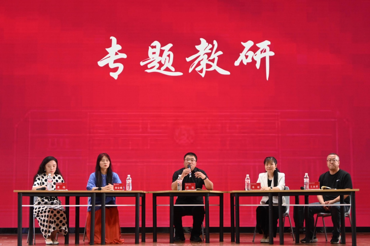 此次活动由北京中学特级教师张媛担任主讲嘉宾,王婧文与来自山西师范大学、河北师范大学、山东师范大学的三名学生,围绕人教版七年级语文下册课文《青春之光》展开同课异构主题教学展示。现场教学环节,王婧文以学校《青春》杂志开展“青春榜样”主题征文活动为切入点,结合《青春之光》中的黄文秀形象,从所见、所闻、所想等正面描写,他人、环境等侧面描写,解答了如何优化写人;从倒叙手法的运用,以小标题处理复杂事件,回应怎样优化记事;最终落实到文字的力量如何再现青春之光这一关键问题。其教学设计受到现场专家学者的一致好评。专题研讨环节,刘安娜老师介绍了本节课教学设计的理念与思路,与在场专家、学者及广大师生展开深入交流。